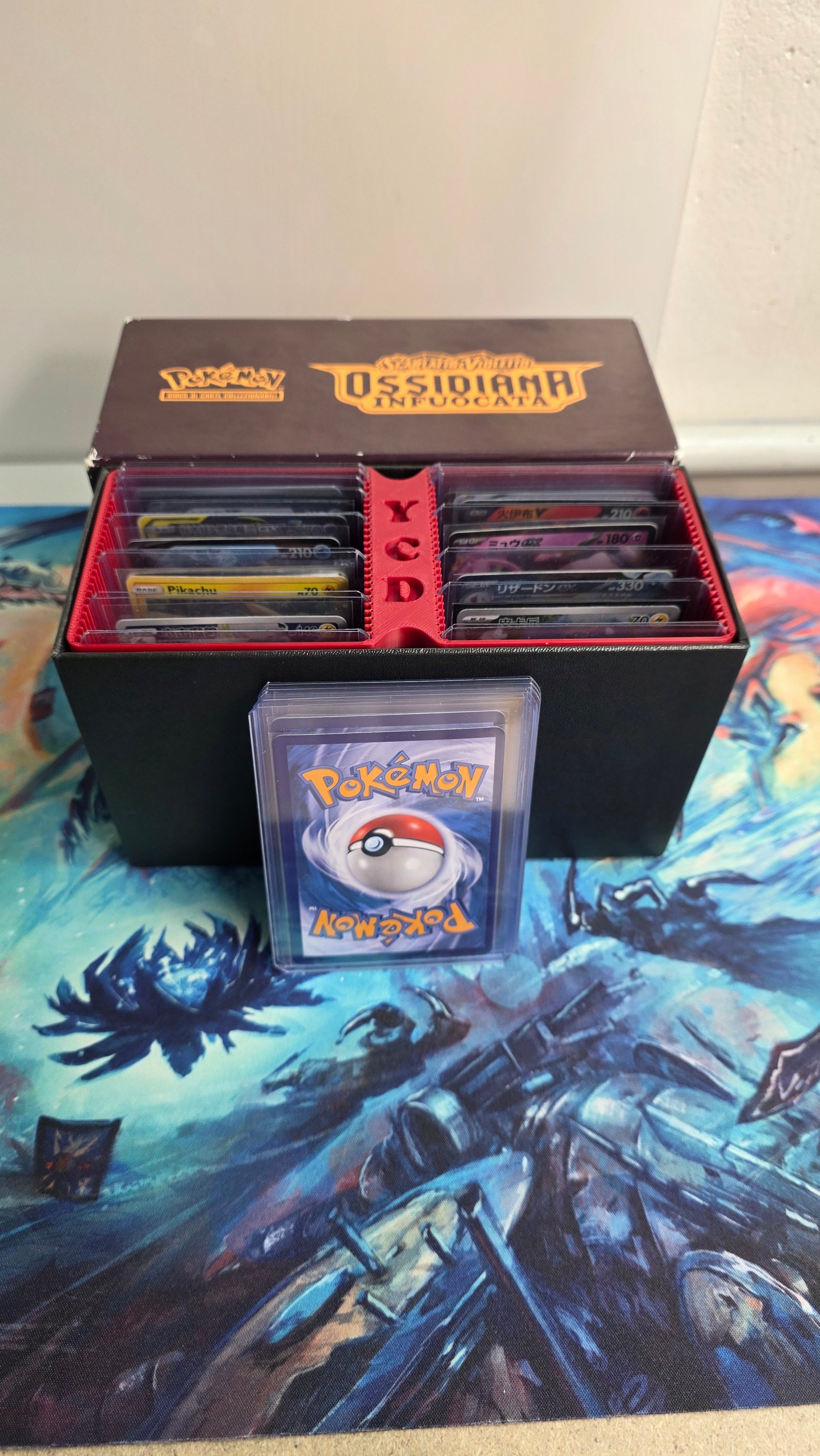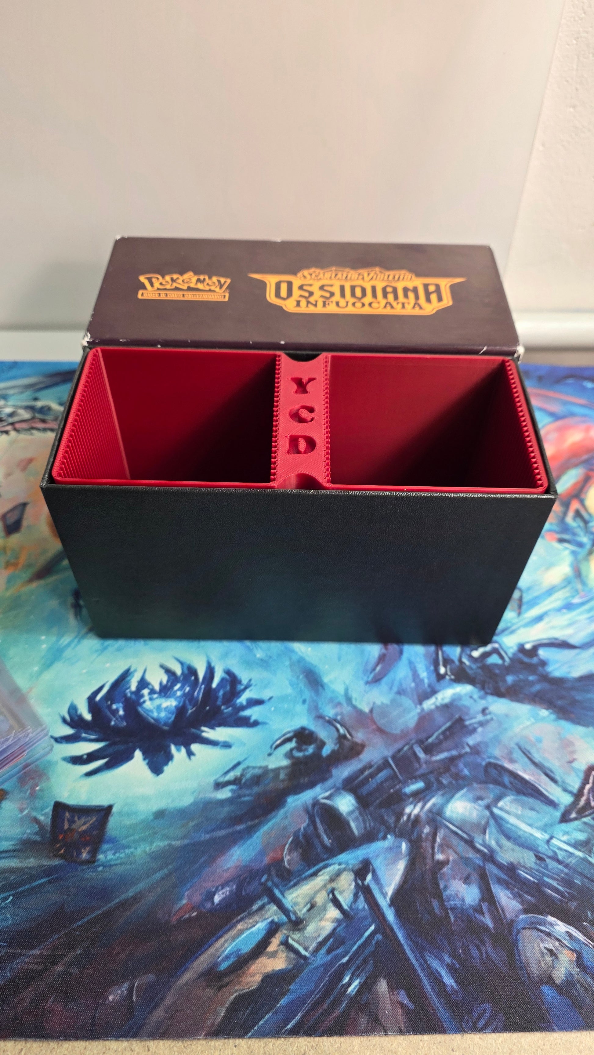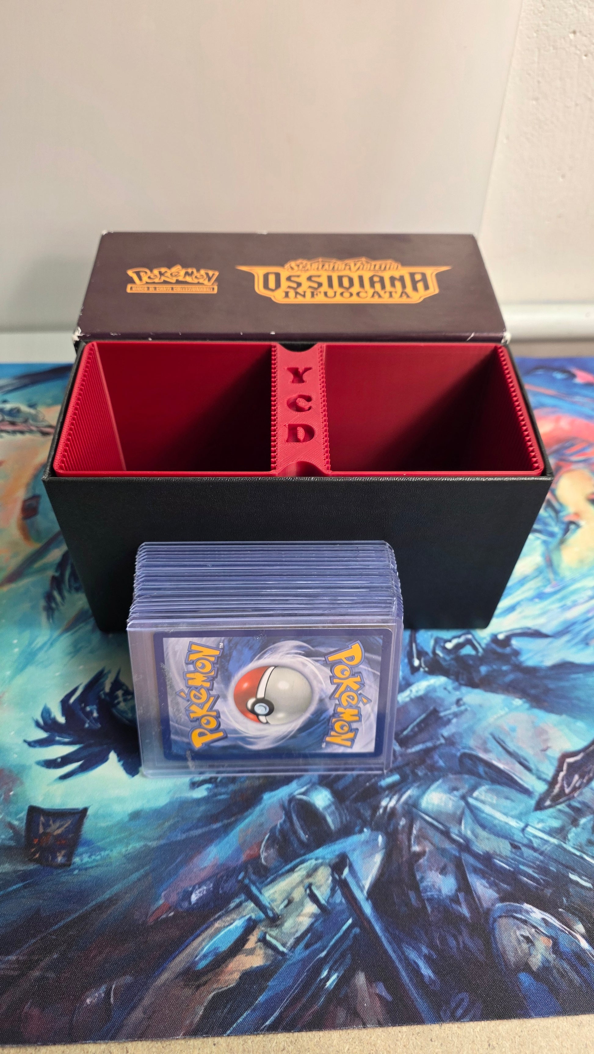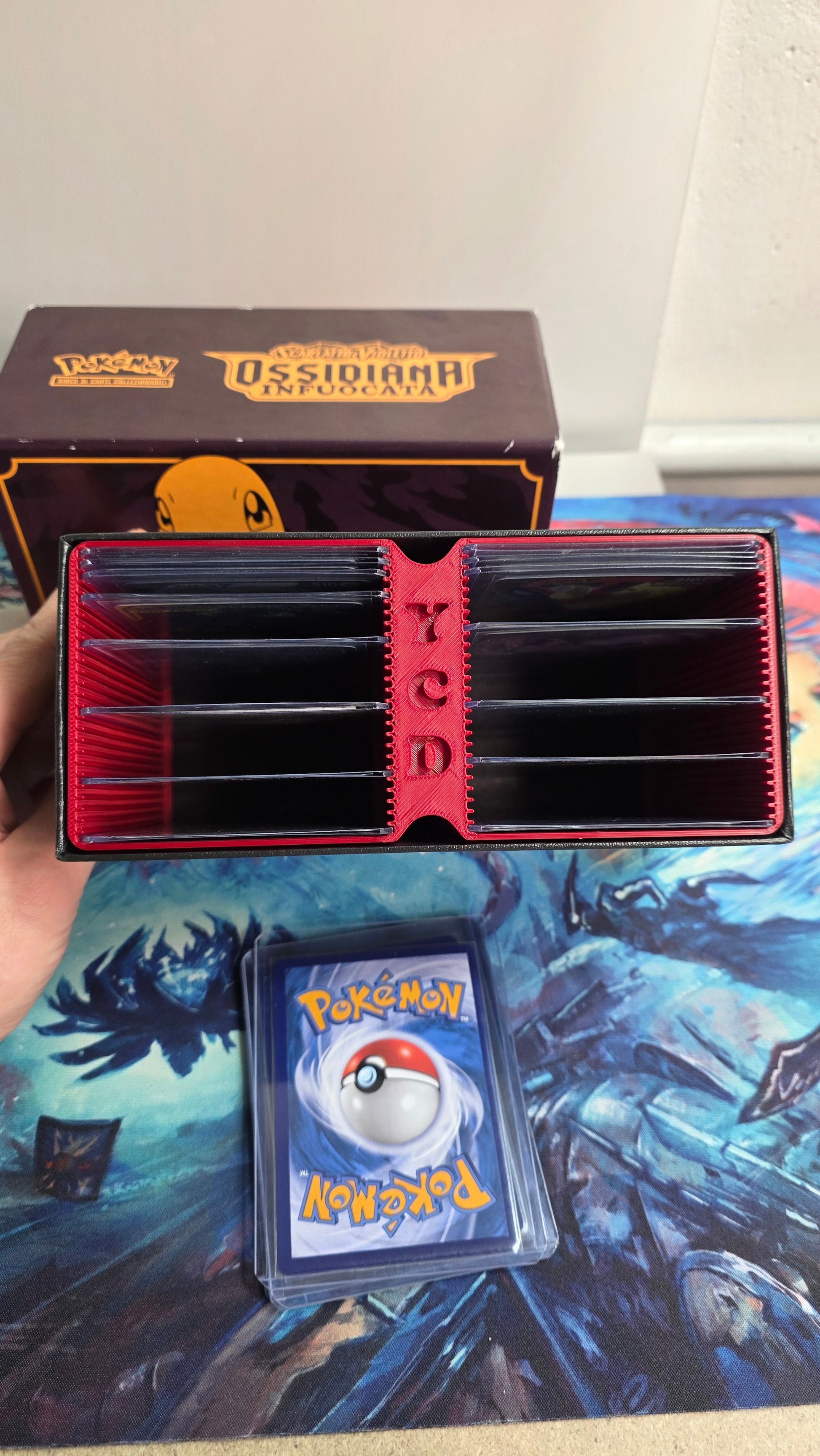 Inserto stampato in 3D progettato specificamente per il Set Allenatore fuoriclasse Pokémon, capace di ospitare fino a 52 toploader.